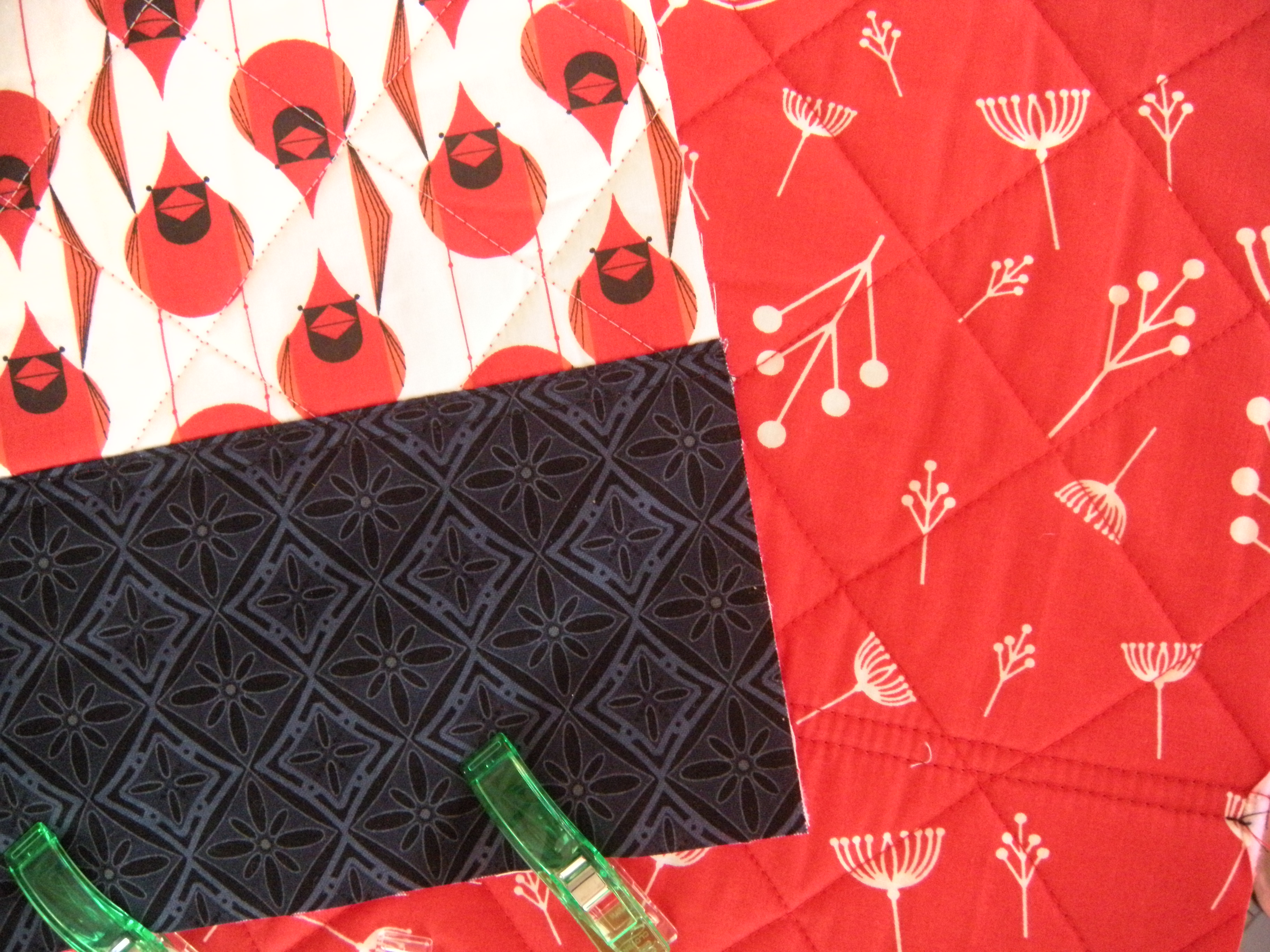 I just had to use this red and white Hawaiian print on the back. And look at that adorable blue and white check I found for the binding!