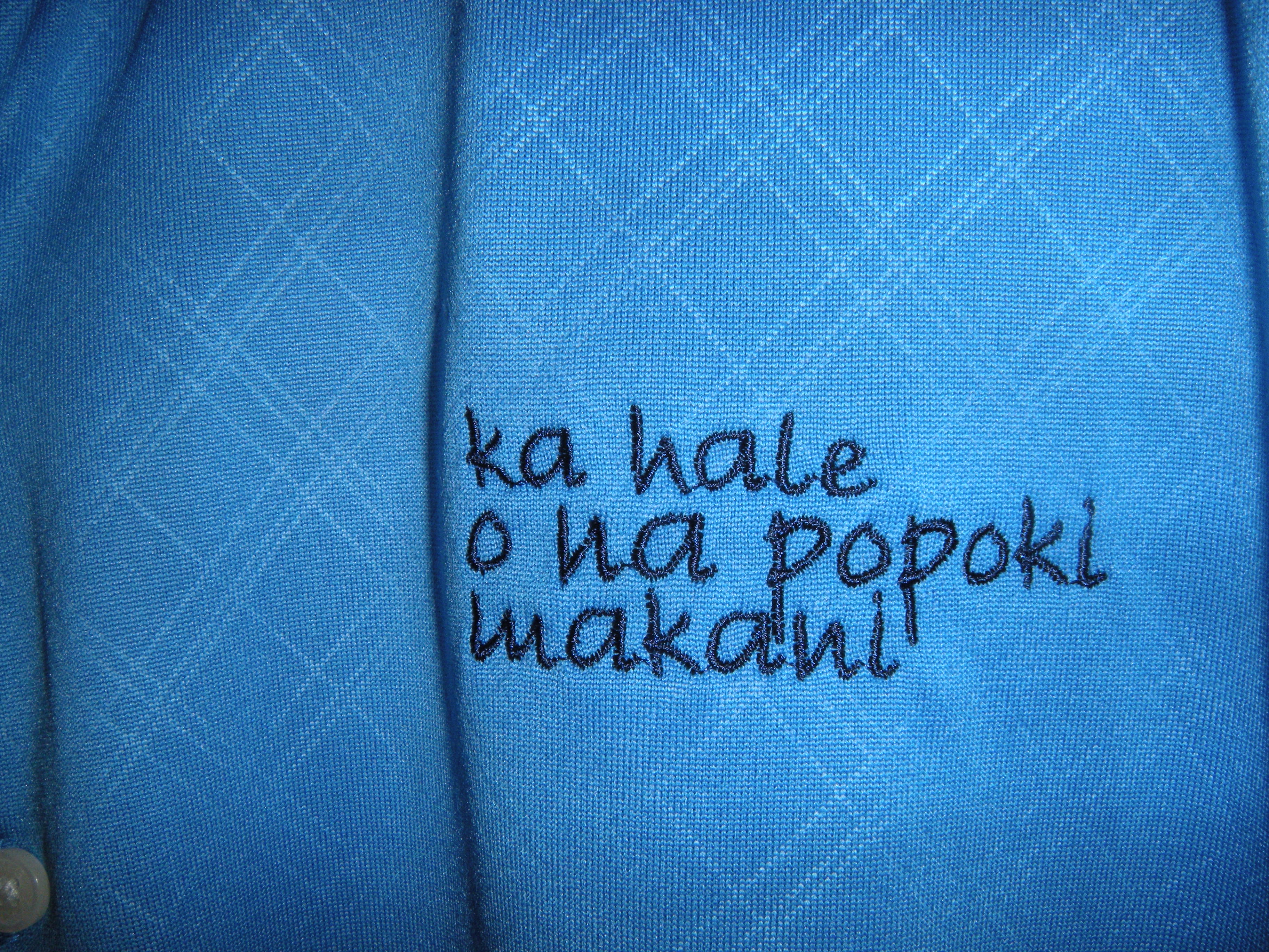 We were inspired by our 20 pound baby panther. And an ornery feral cat that adopted us (we named her Monique, after a flamboyantly sassy former friend of Miss O.) With the help of an adorable twelve-year-old girl, a student at a Hawaiian speaking school, we came up with a name for our house: ka hale o na popoki makani. The house of the windy cats. This is why I like naming things.