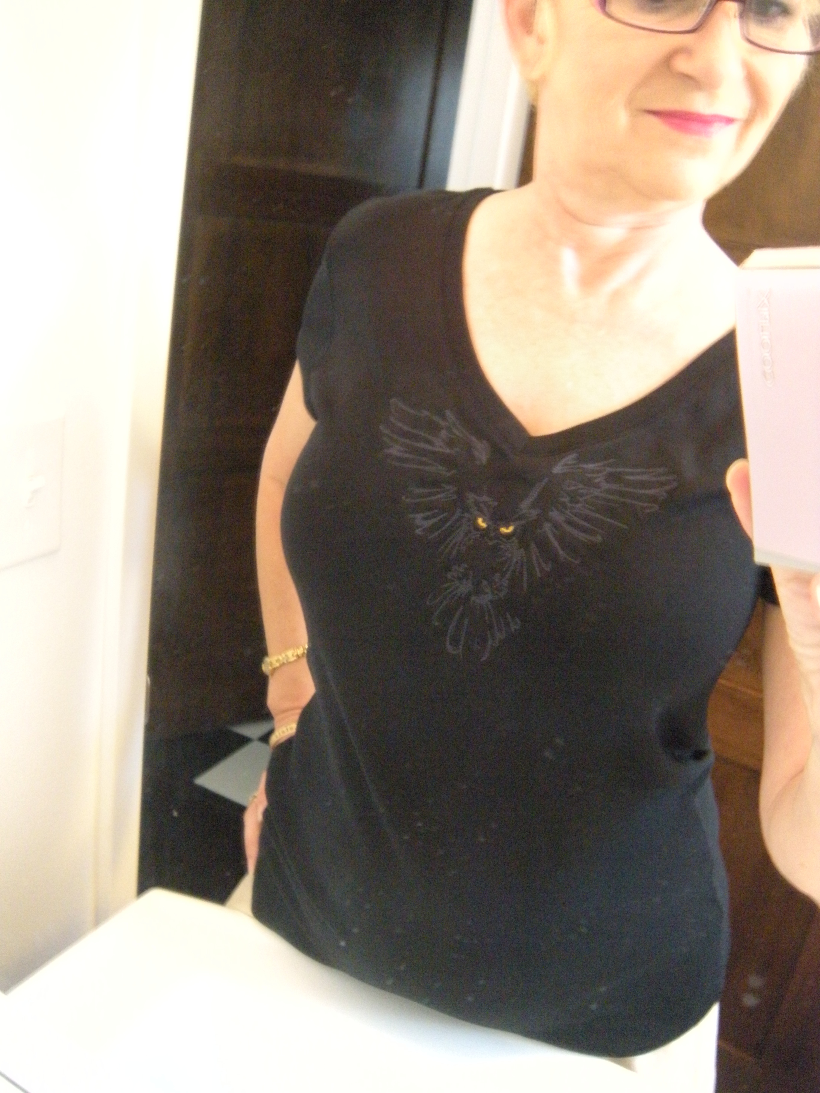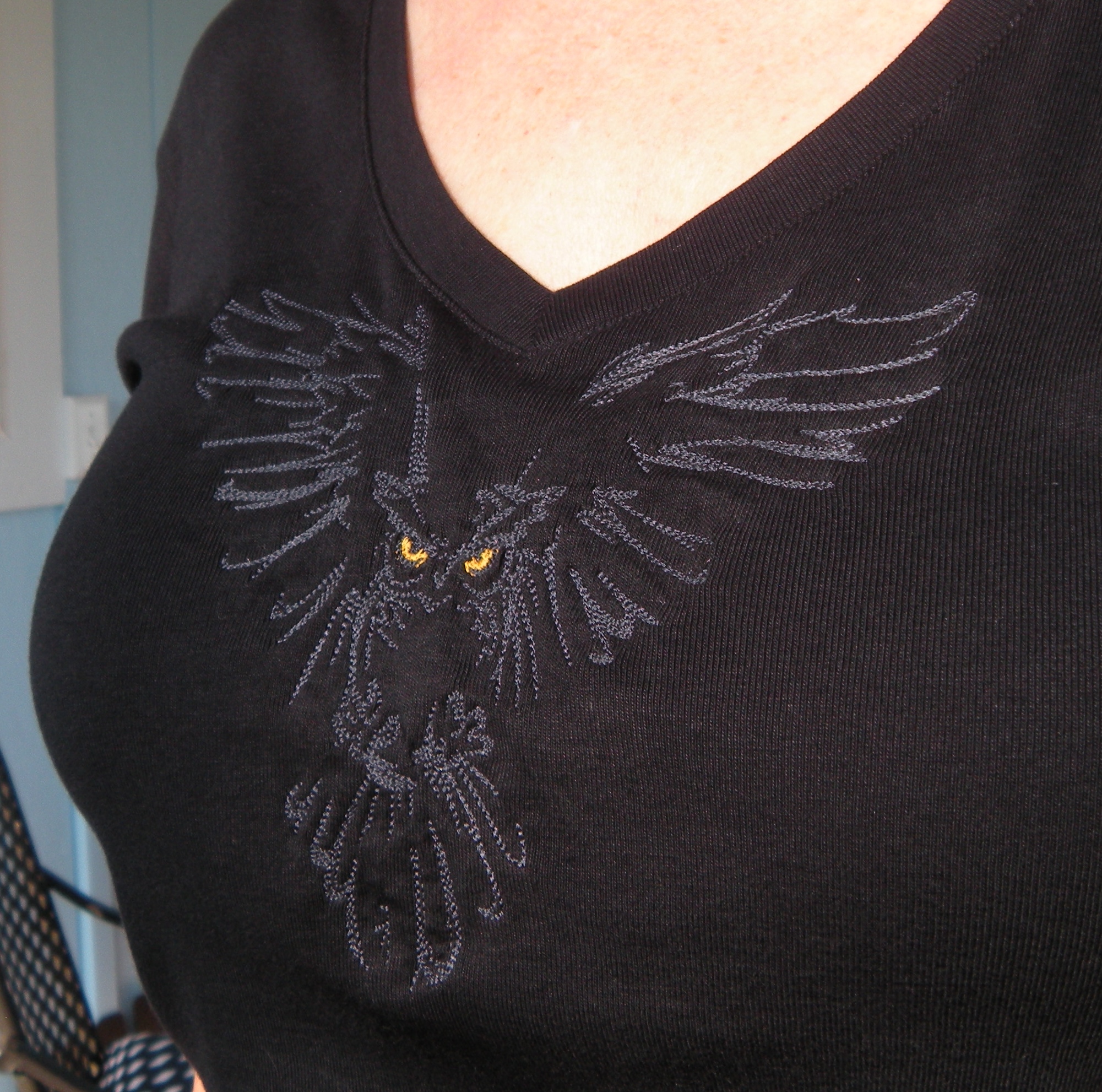 Not your grandmother’s shirt, is it? I found this awesome design on http://www.urbanthreads.com Urban Threads has the coolest embroidery designs I’ve found on the web. I am obsessed, and I’m even going to shove my wares onto my daughter and my niece. Heh heh heh, they’re not expecting this, so don’t tell them.