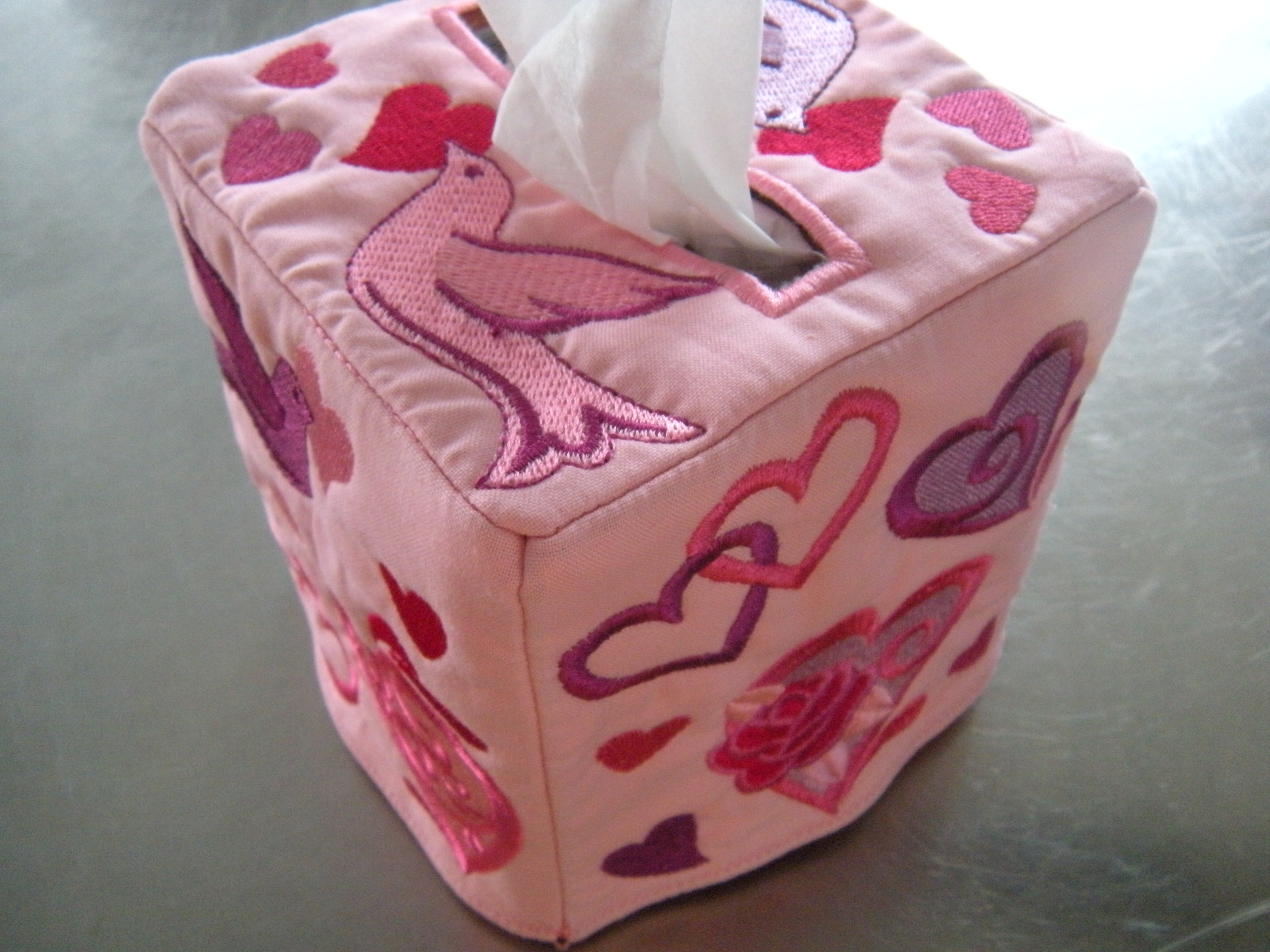 Then I longed for options. I can’t possibly keep my tissues covered with a snowman year ’round! As if the cosmos were answering, Anita Goodesign came out with a disk of seasonal kleenex covers. Not kidding. Err mer gawsh. I hope you’re wearing your patient pants, because you don’t get to see the next one until after Valentine’s Day.