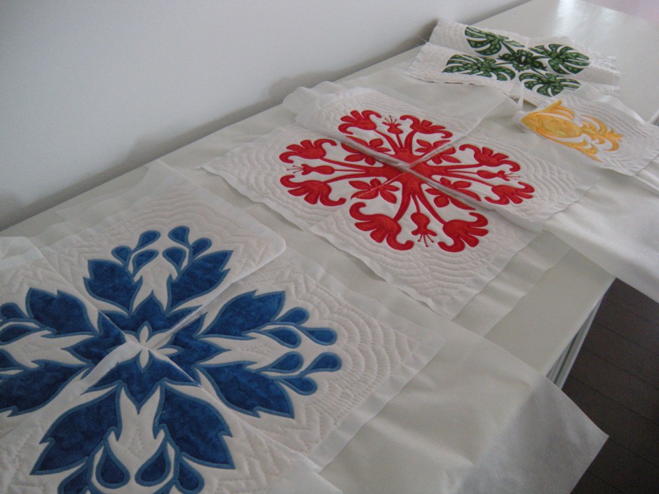 I like my little appliqué cornerstones. There are two Hawaii’s on the bottom.