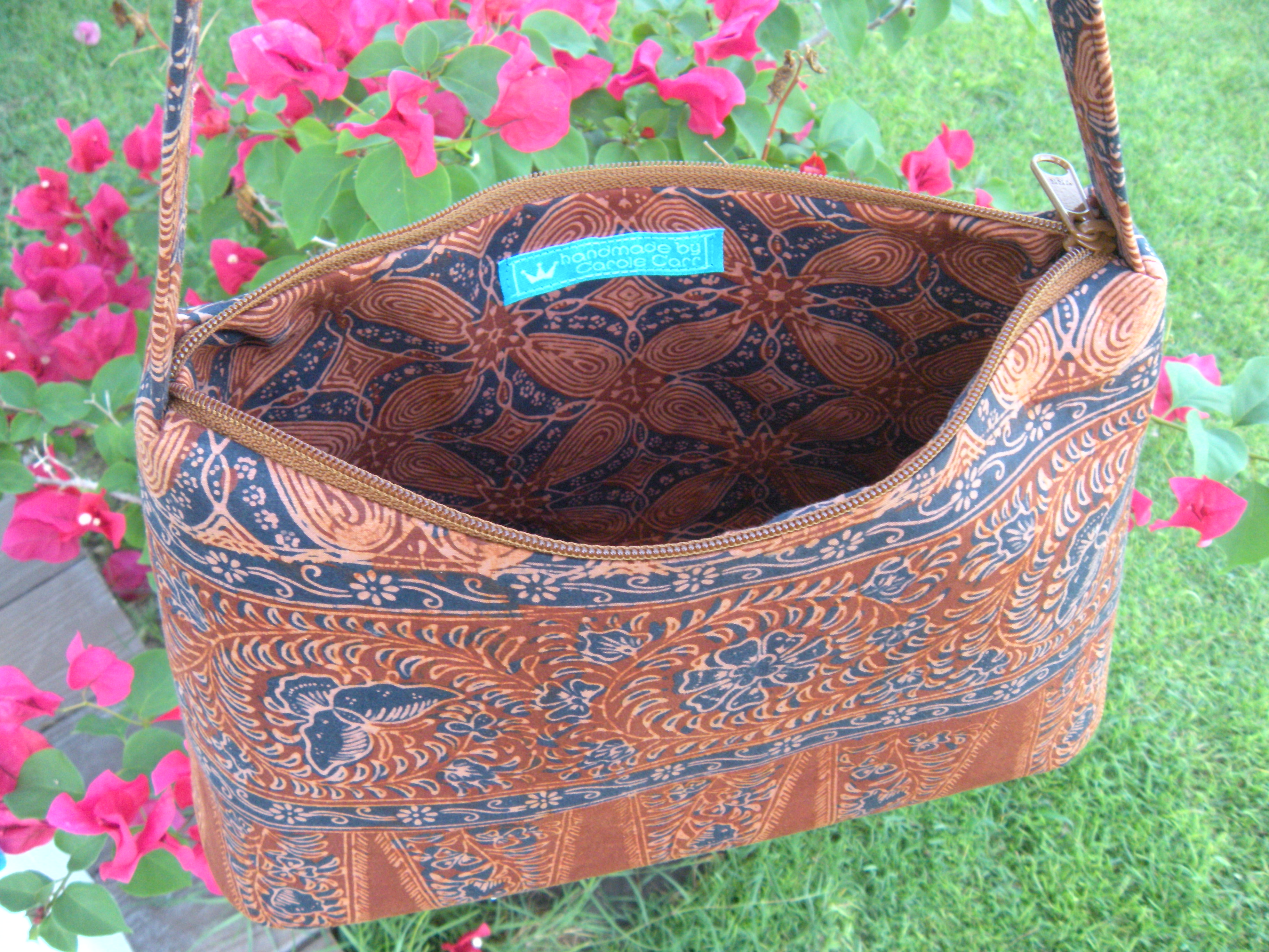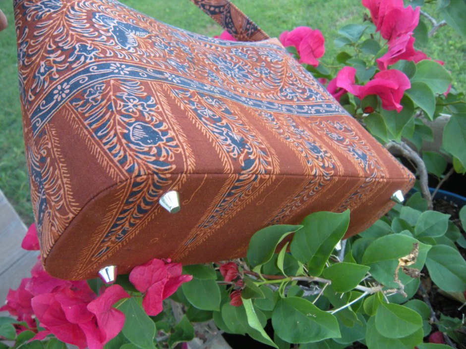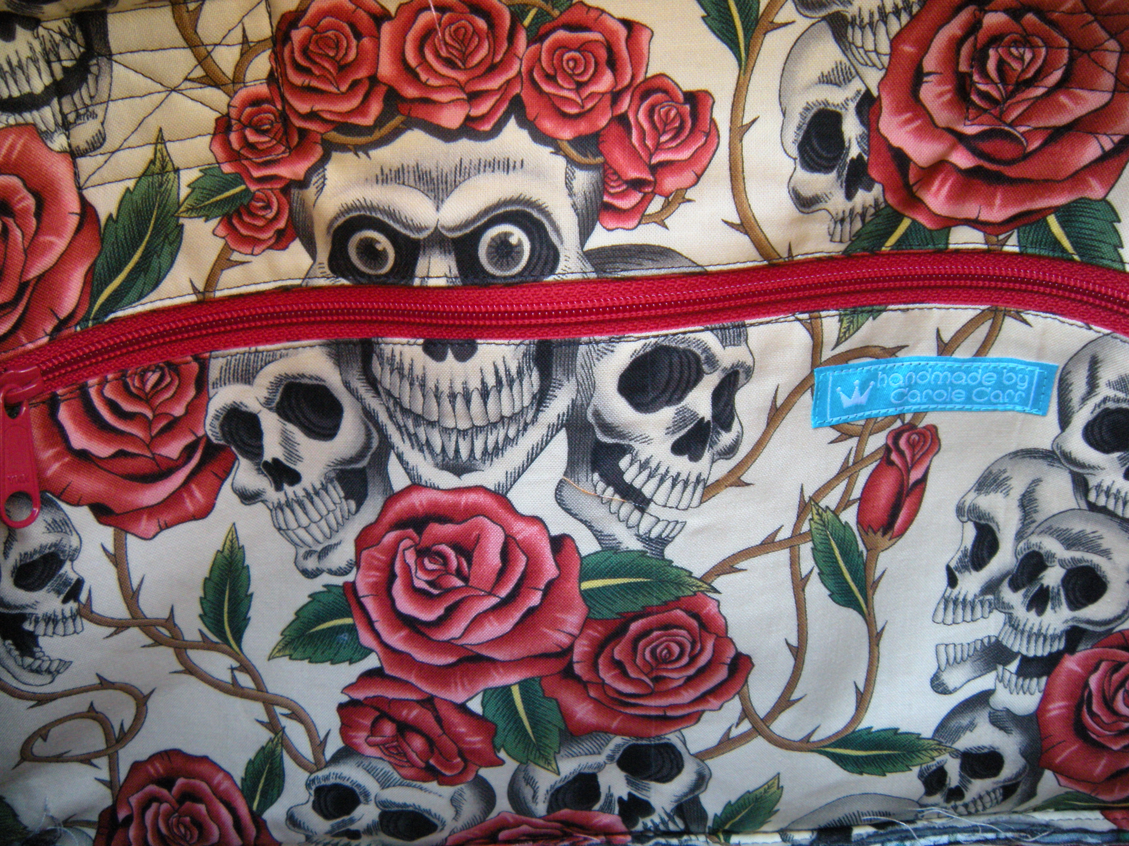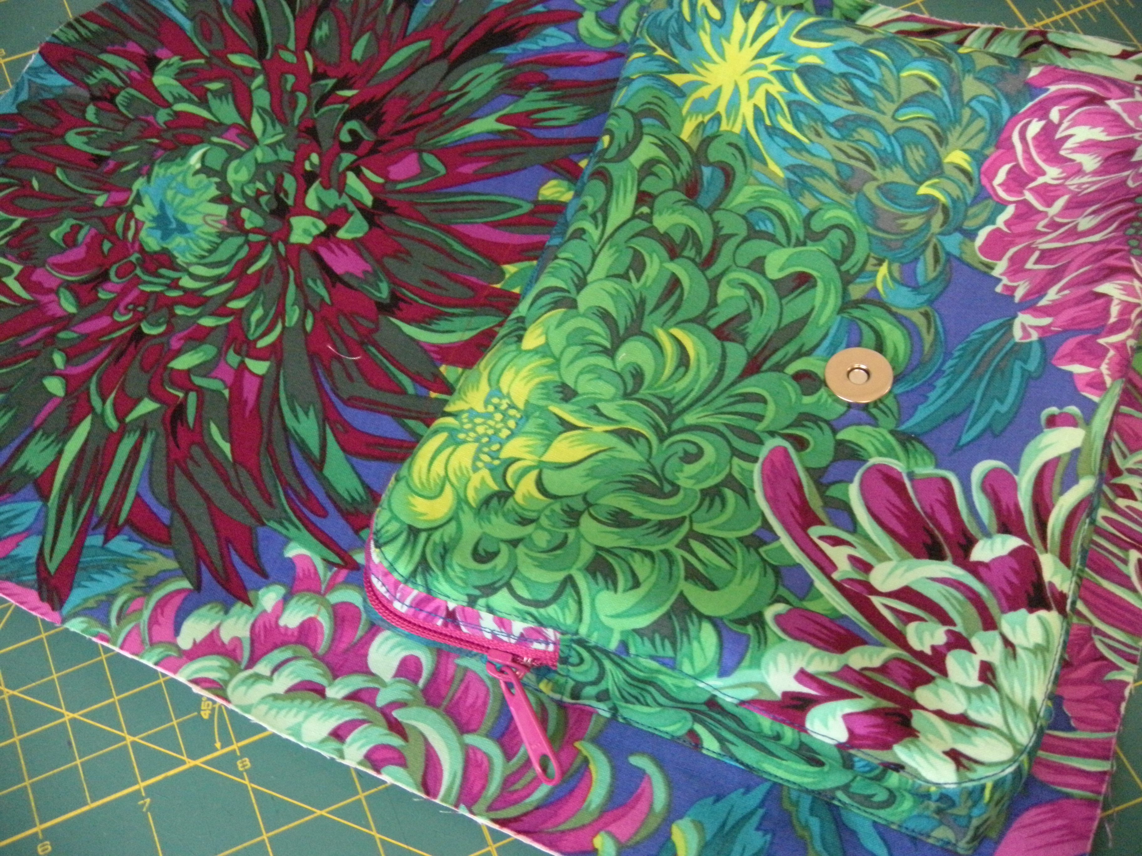 The lining is so darn cute! Coordinating fabric from Kanvas, obviously. Teeny little gold shots in the roses. Color, not liquor shots.