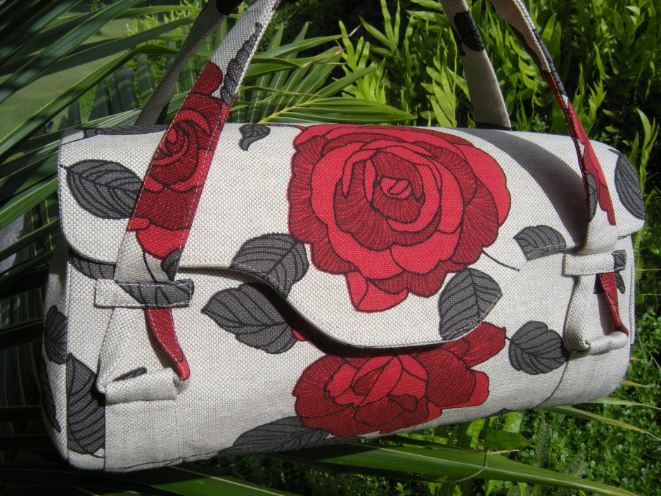 This is the Weekender Travel Bag pattern by Amy Butler. The fabric, not surprisingly, is from a manufacturer in the UK.