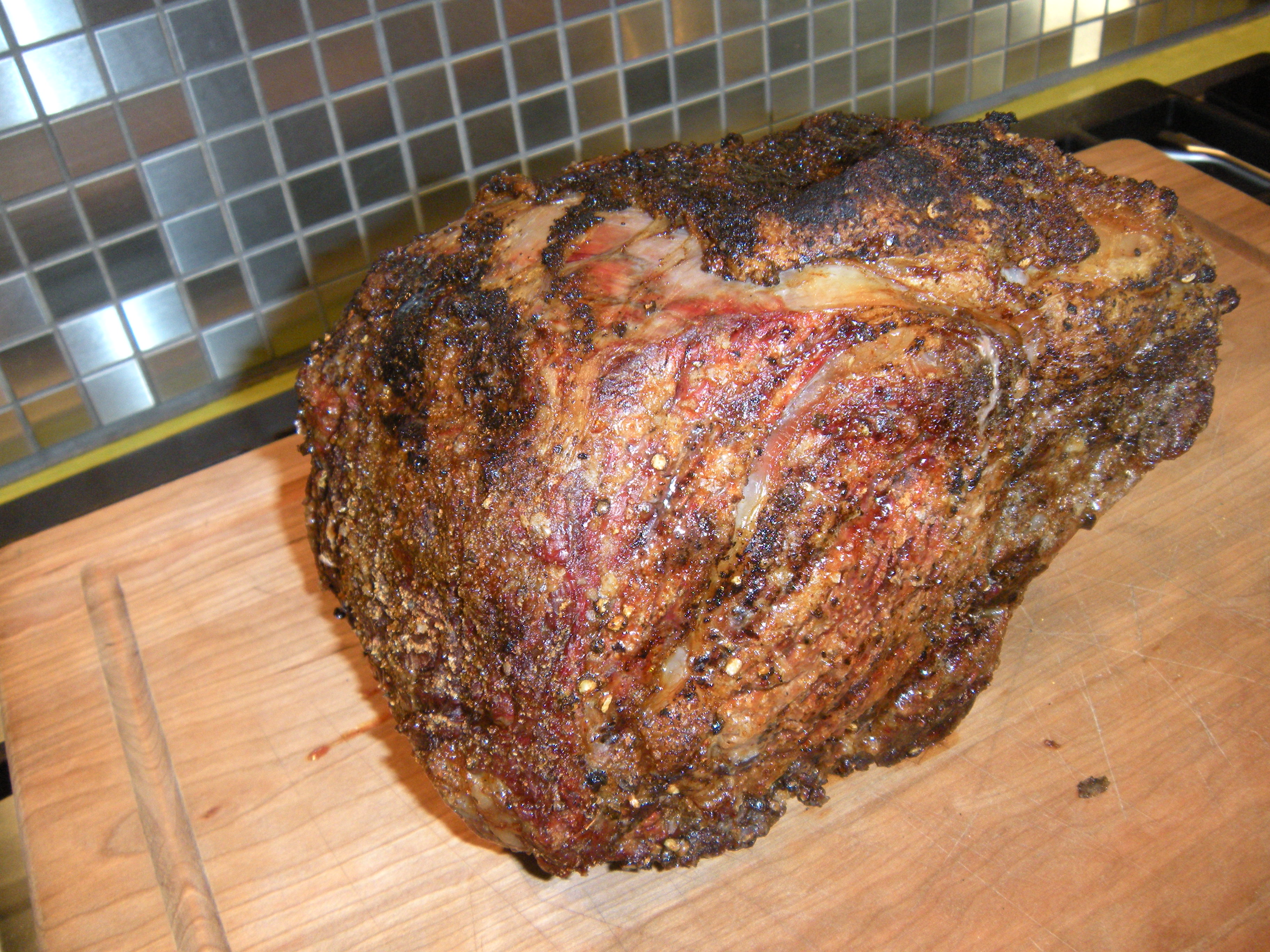 There’s something so comforting about a big chunk of beef. I had decided that this 5-1/2 pound beauty was too small for Christmas, but I’m sure glad I found it in the freezer in time for Valentine’s Day. Covered that bad boy in a dry rub made from cayenne, paprika, garlic, fresh ground pepper, and amazing, chunky Hawaiian sea salt. My daughter just loves the word chunky.