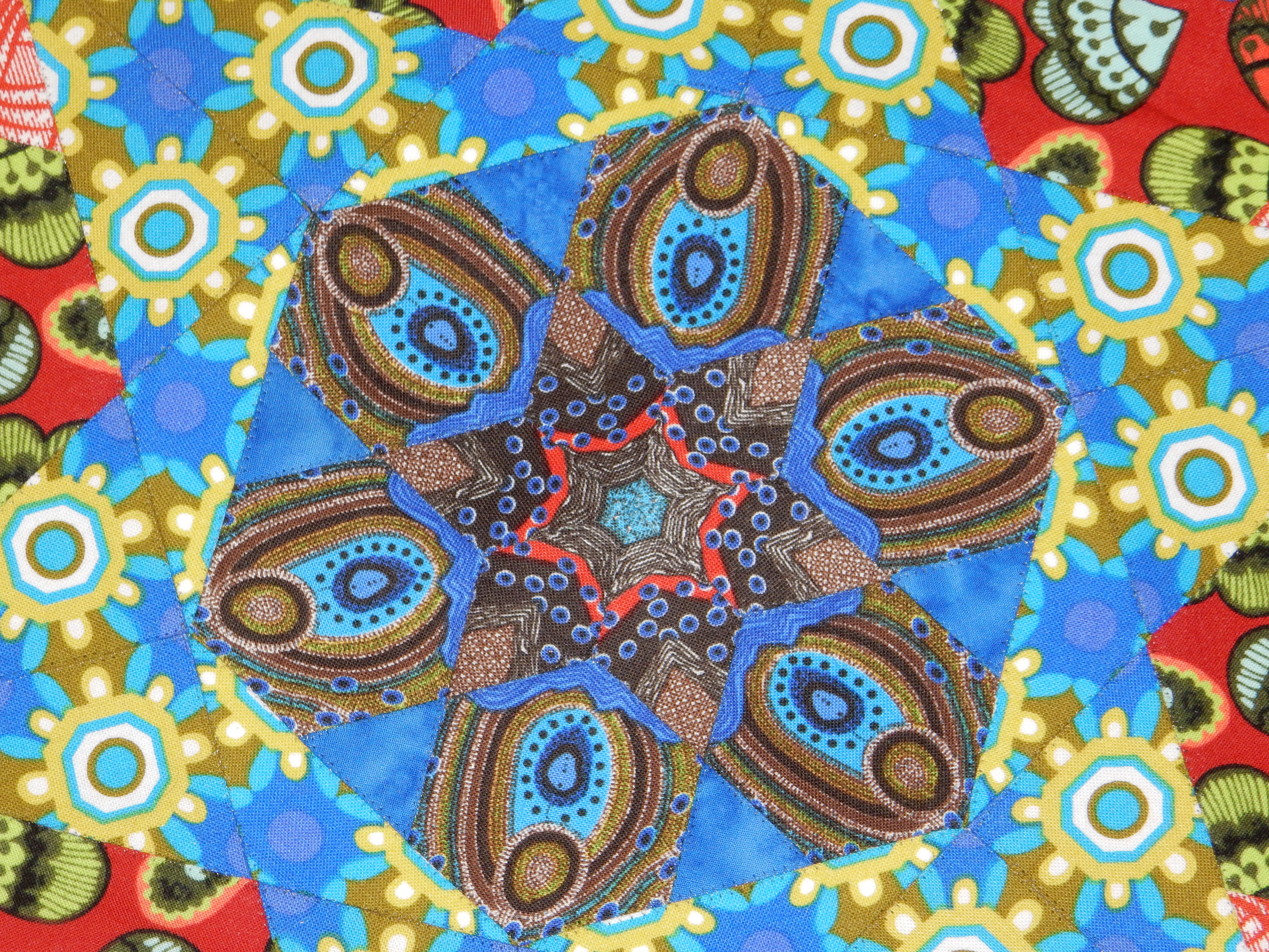 Machine stitching the New Hexagon Millefiore Quilt rosette #2: I still love paper and glue, but mostly fabric