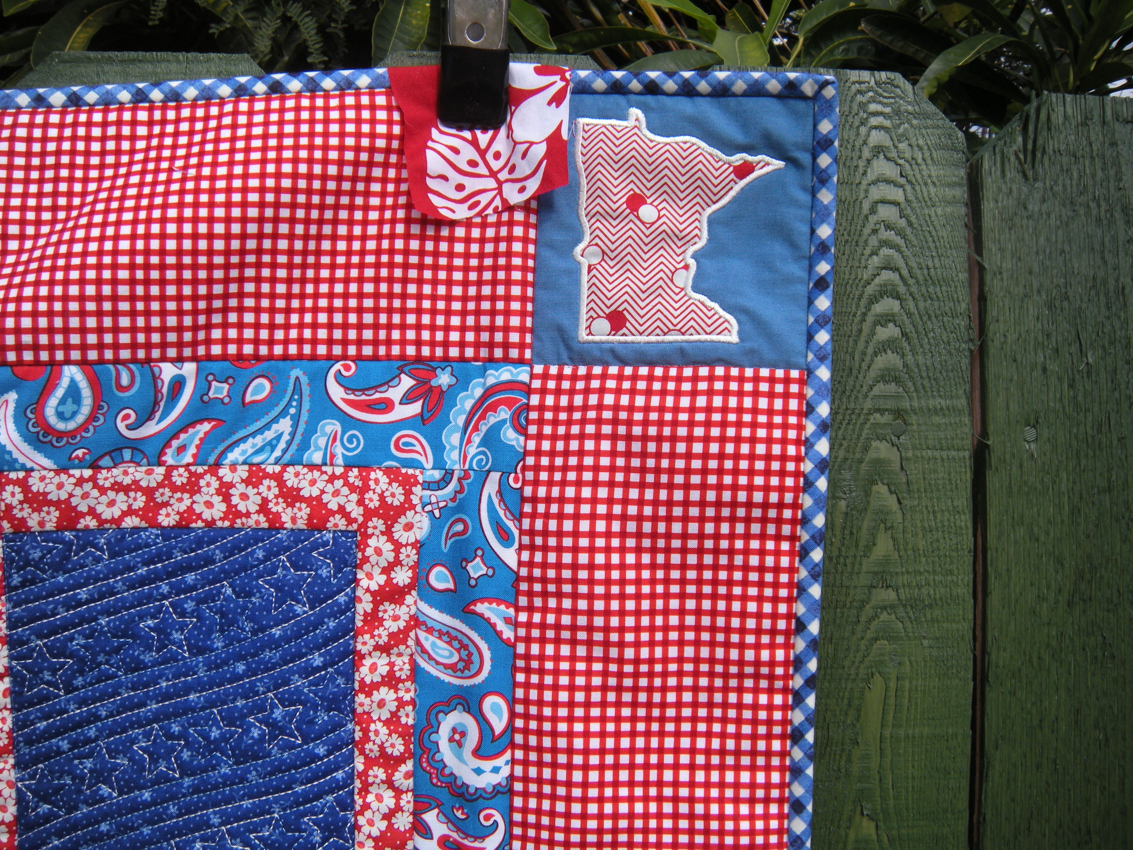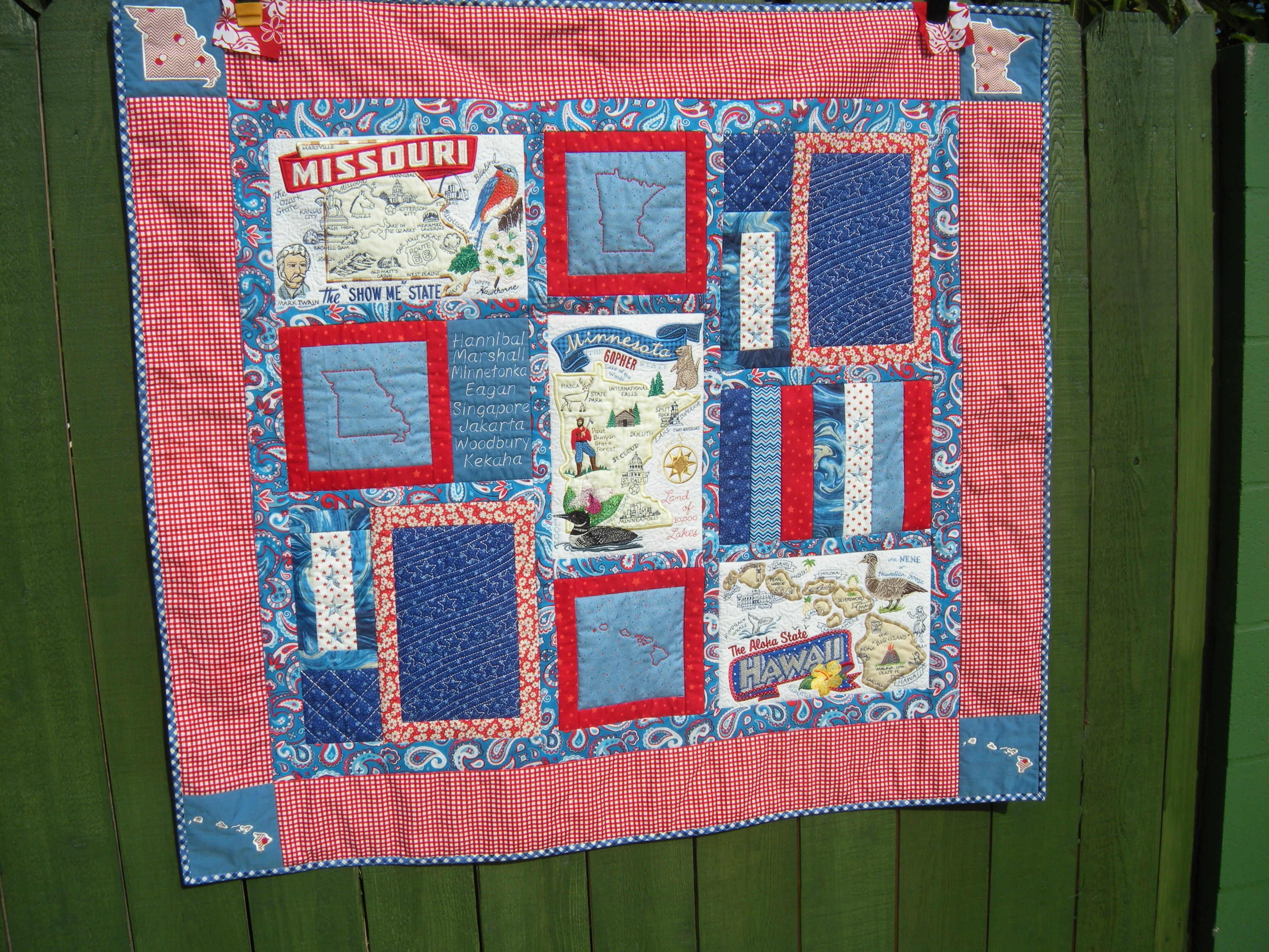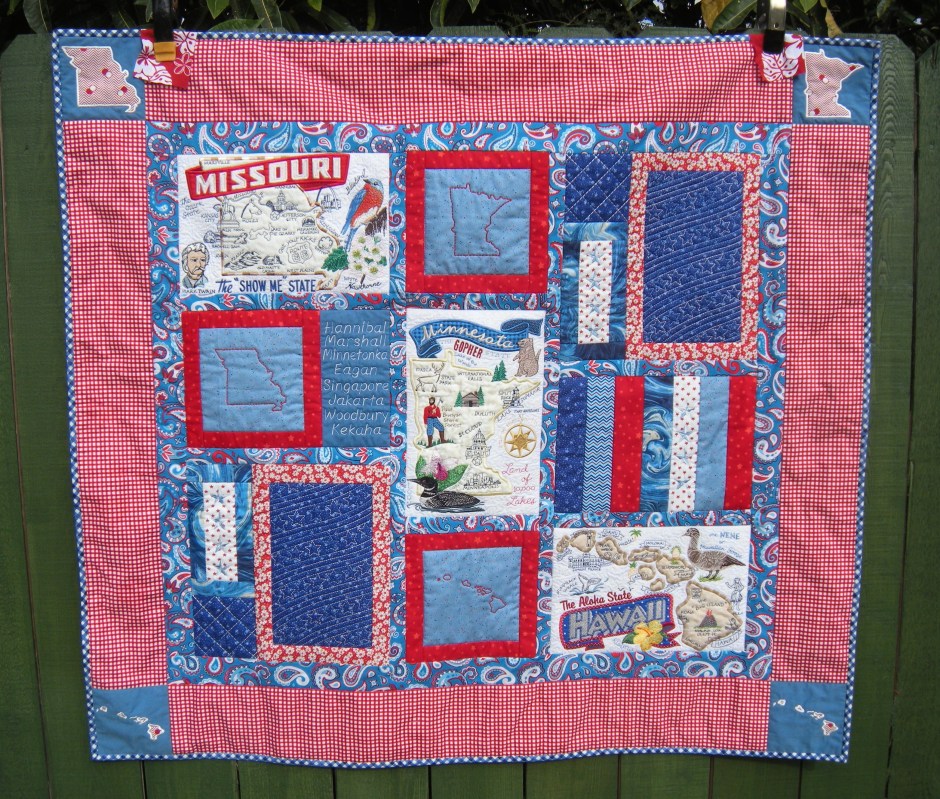 I like my little appliqué cornerstones. There are two Hawaii’s on the bottom.