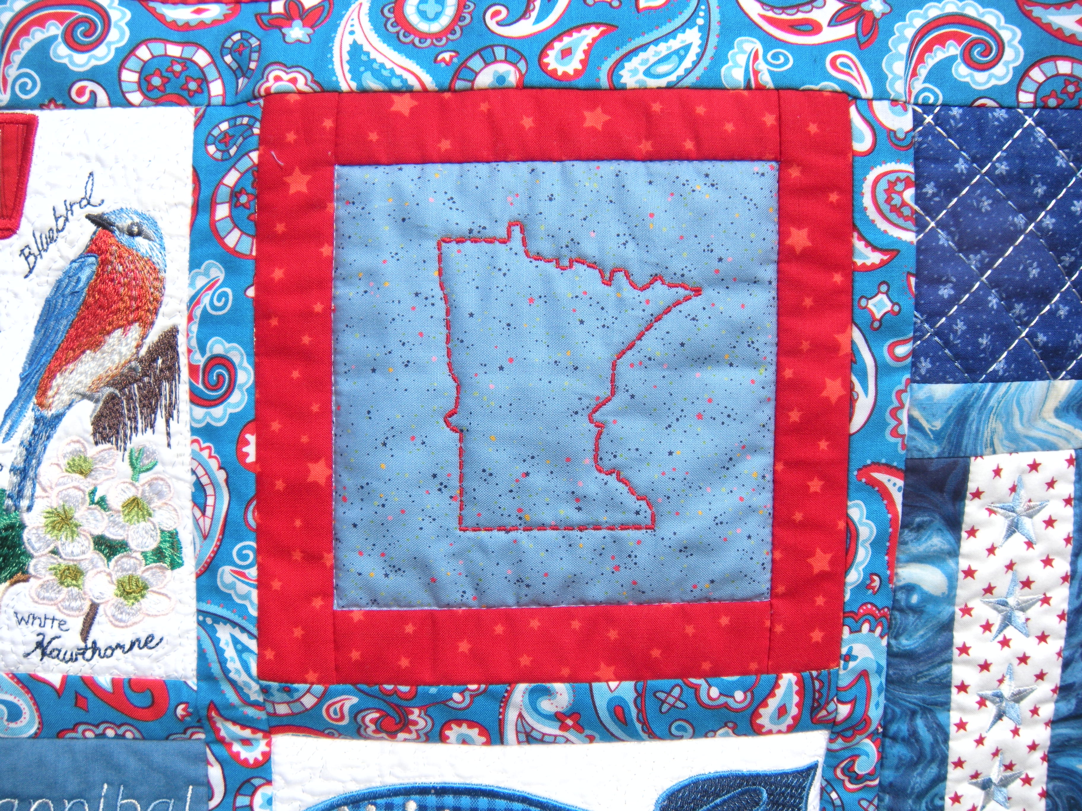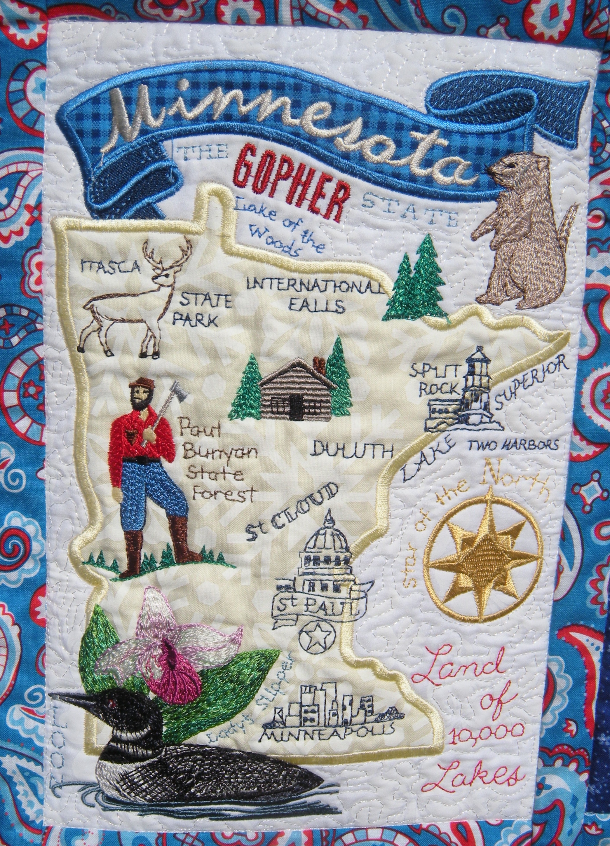 I’m pretty sure that embroidering the state of Minnesota is the only opportunity I will have to make a gopher. Unliess I decide to do a Caddyshack quilt some day. What the heck would that look like?